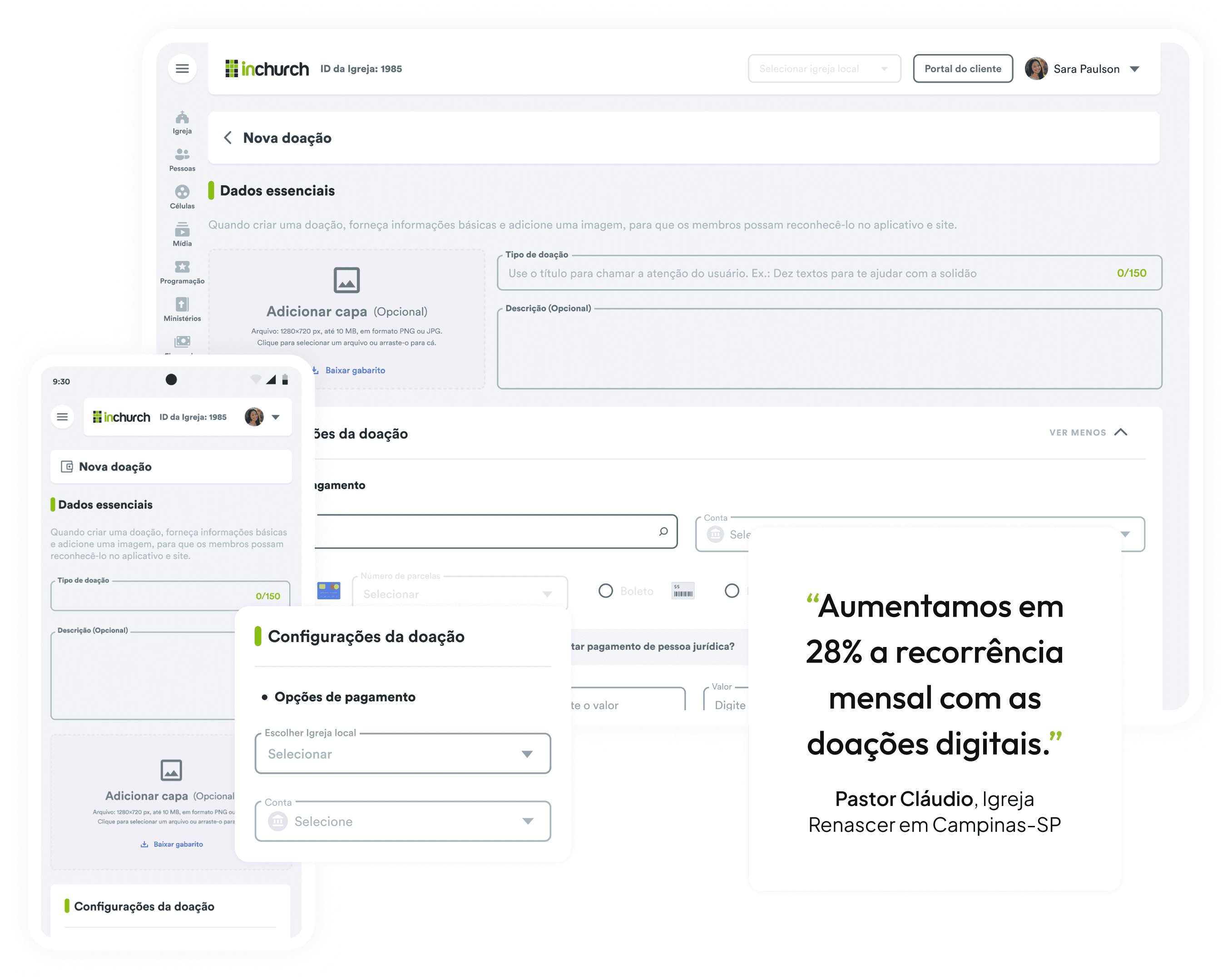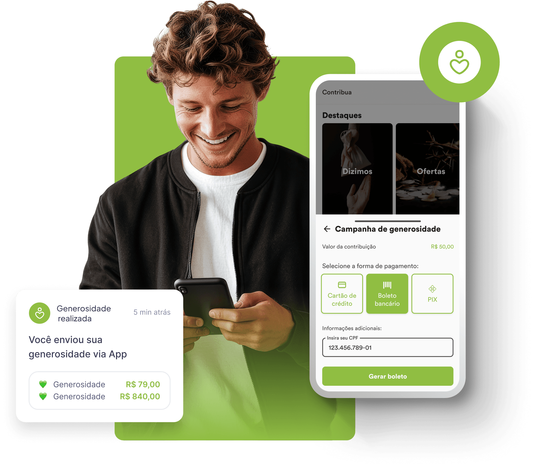 Facilite a contribuição e dê vida a campanhas que fortalecem a missão da sua igreja