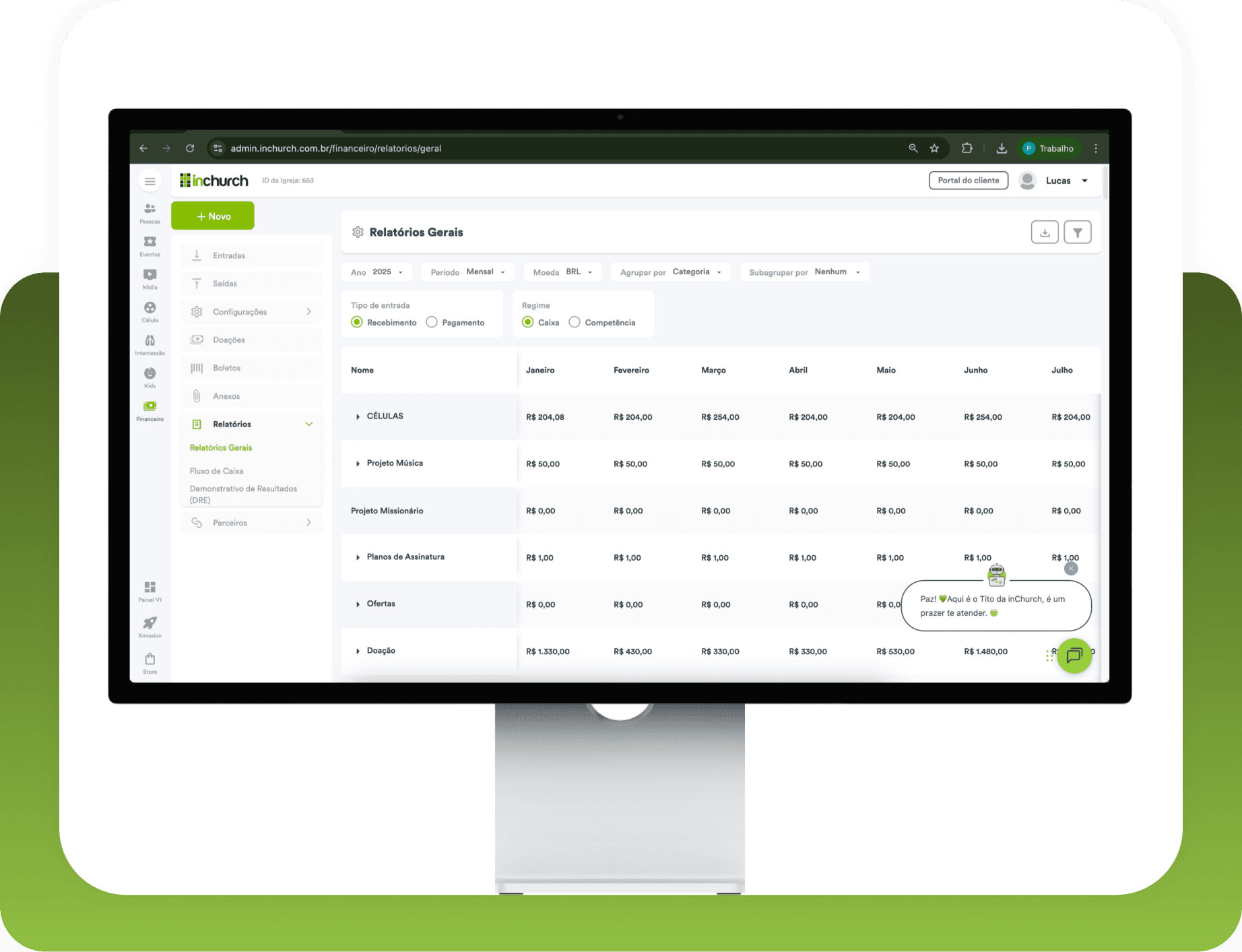 Com a área de relatórios automatizados, sua igreja tem acesso a: