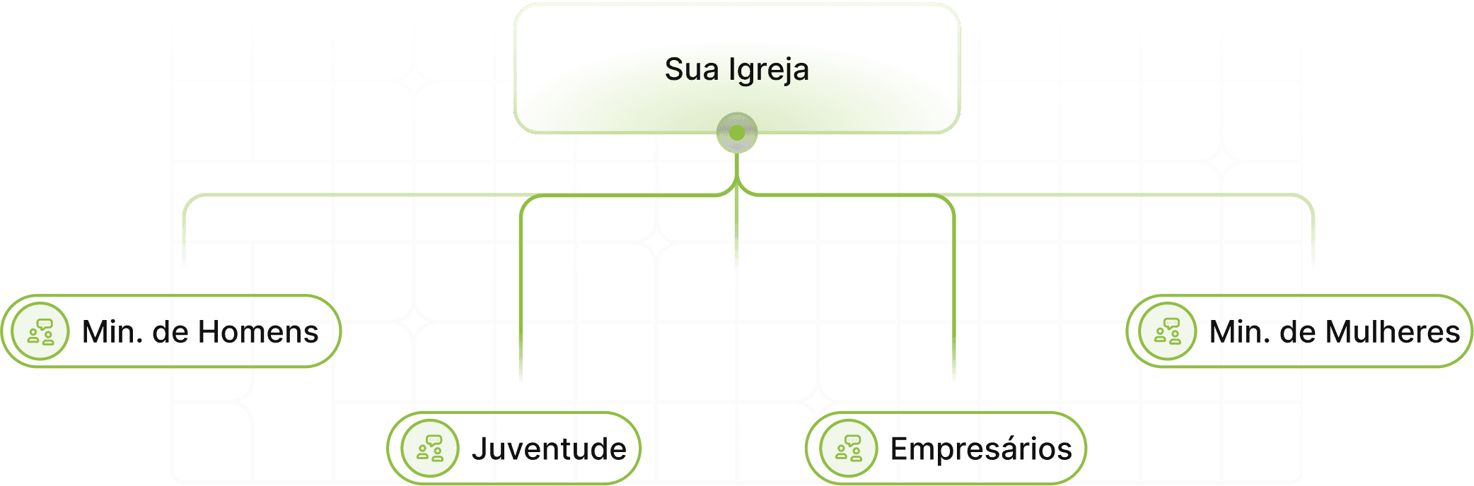 Segmente e organize as doações por grupos da sua igreja, como: ministério de homens, Juventude, Empresários, etc.