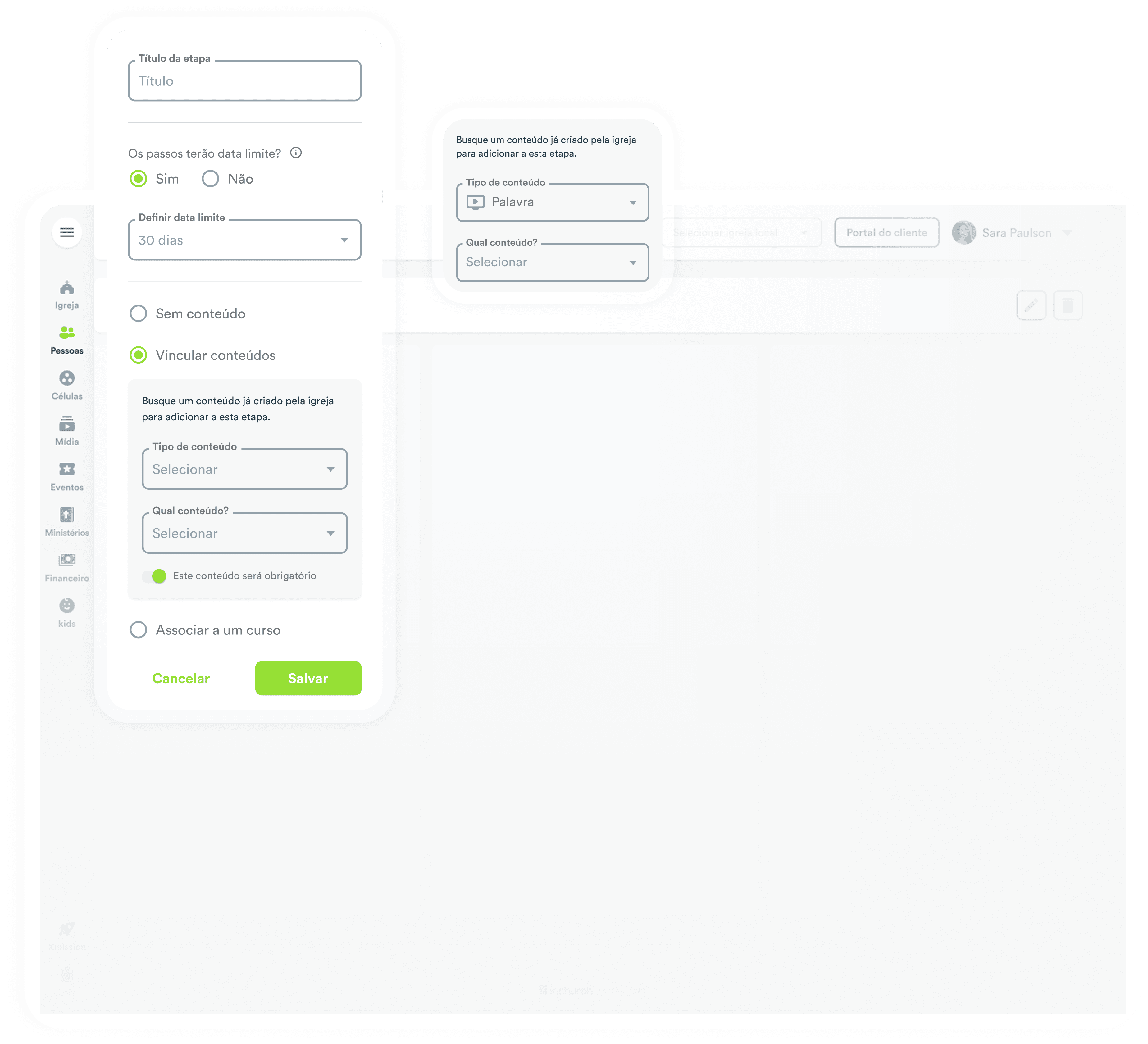 Com o módulo de Jornadas da inChurch, você tem em mãos uma ferramenta estratégica para cuidar das pessoas, promover avanço espiritual e estruturar o discipulado de forma inteligente.