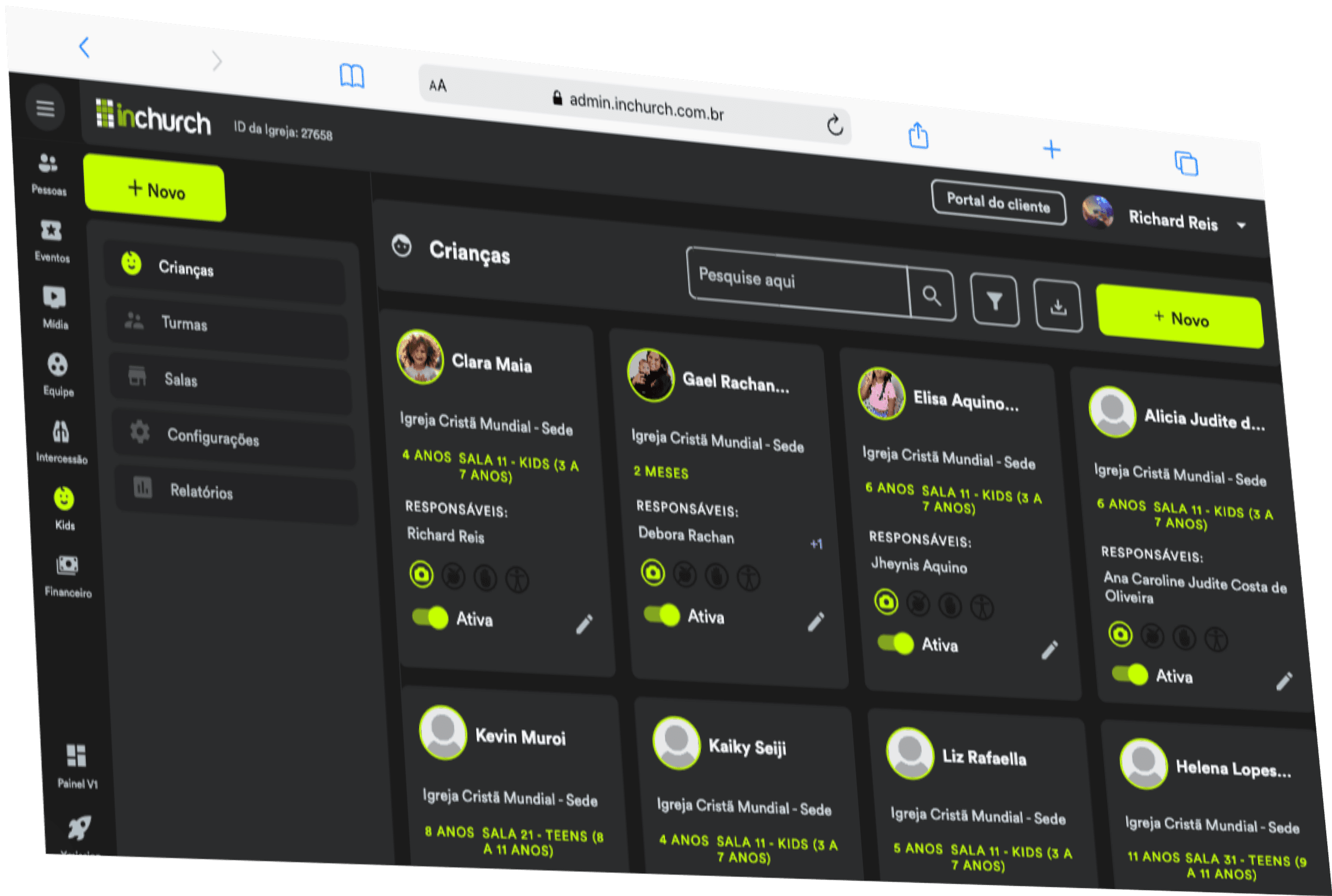 Veja o fluxo de trabalho do inChurch Kids em tempo real