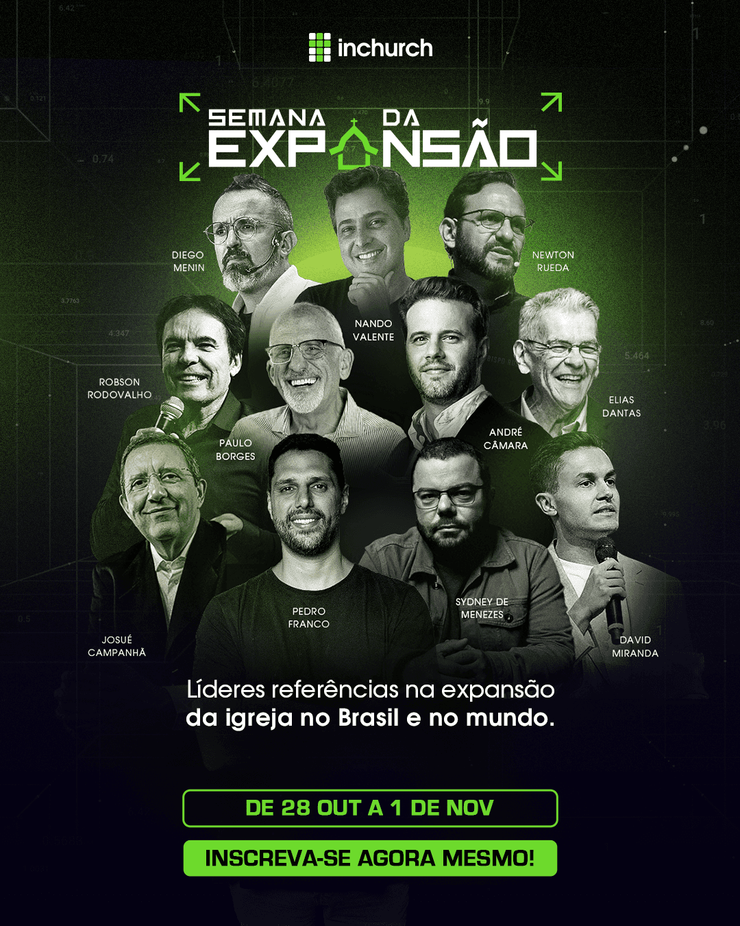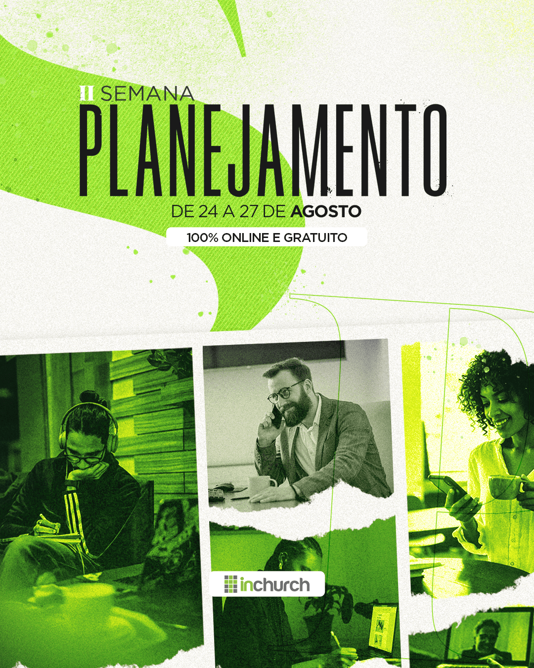 Serão 5 dias com conteúdos relevantes, junto a especialistas que irão mostrar na prática como estruturar o uso da plataforma da inChurch para potencializar cada ministério da sua igreja.