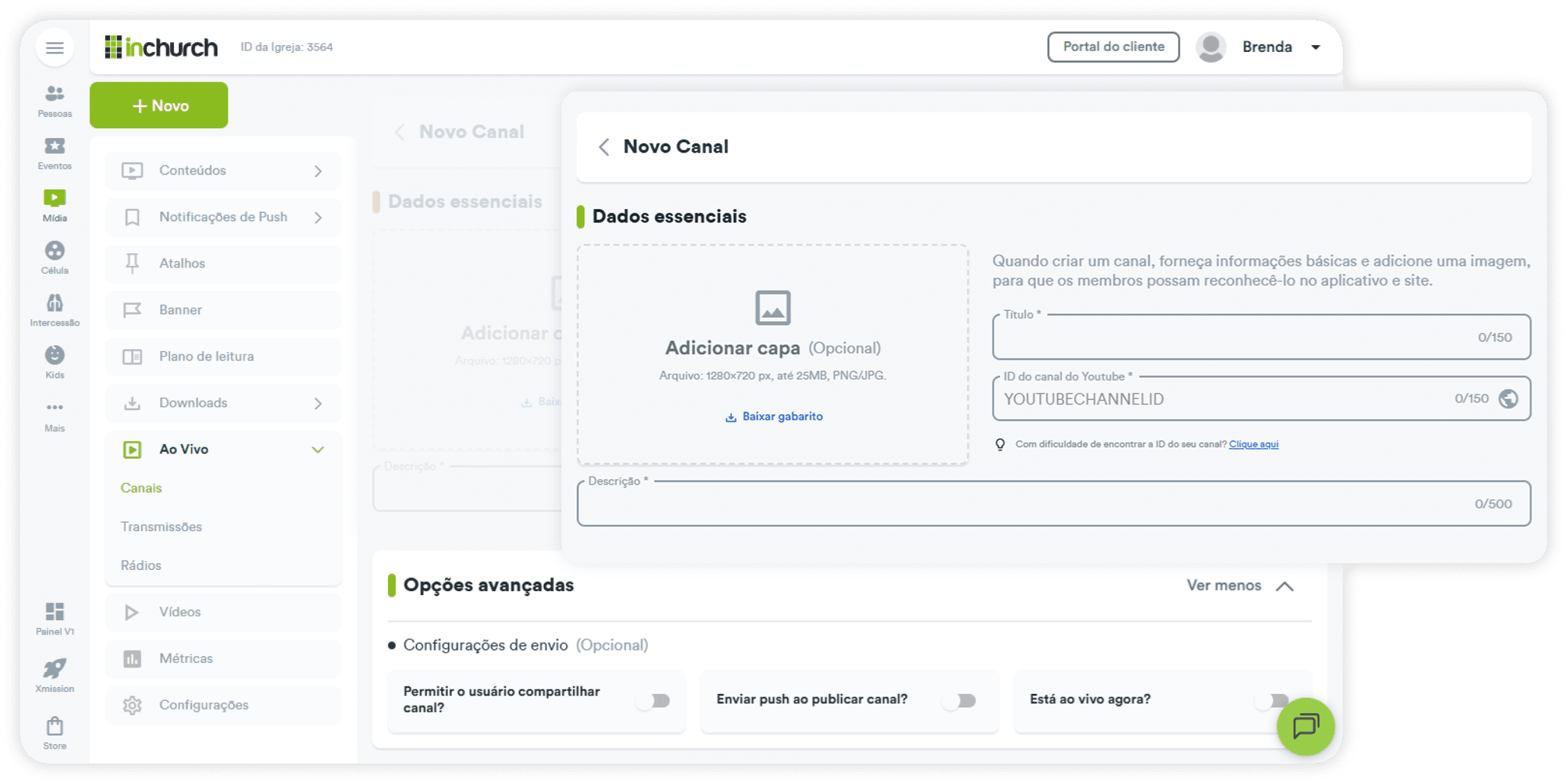 Para tornar sua vida mais fácil, a partir de agora não será mais necessário fazer o preenchimento de todas as caixas de informação. Basta inserir o ID do canal e o preenchimento acontecerá de forma automática. Otimizando tempo e facilitando as transmissões.