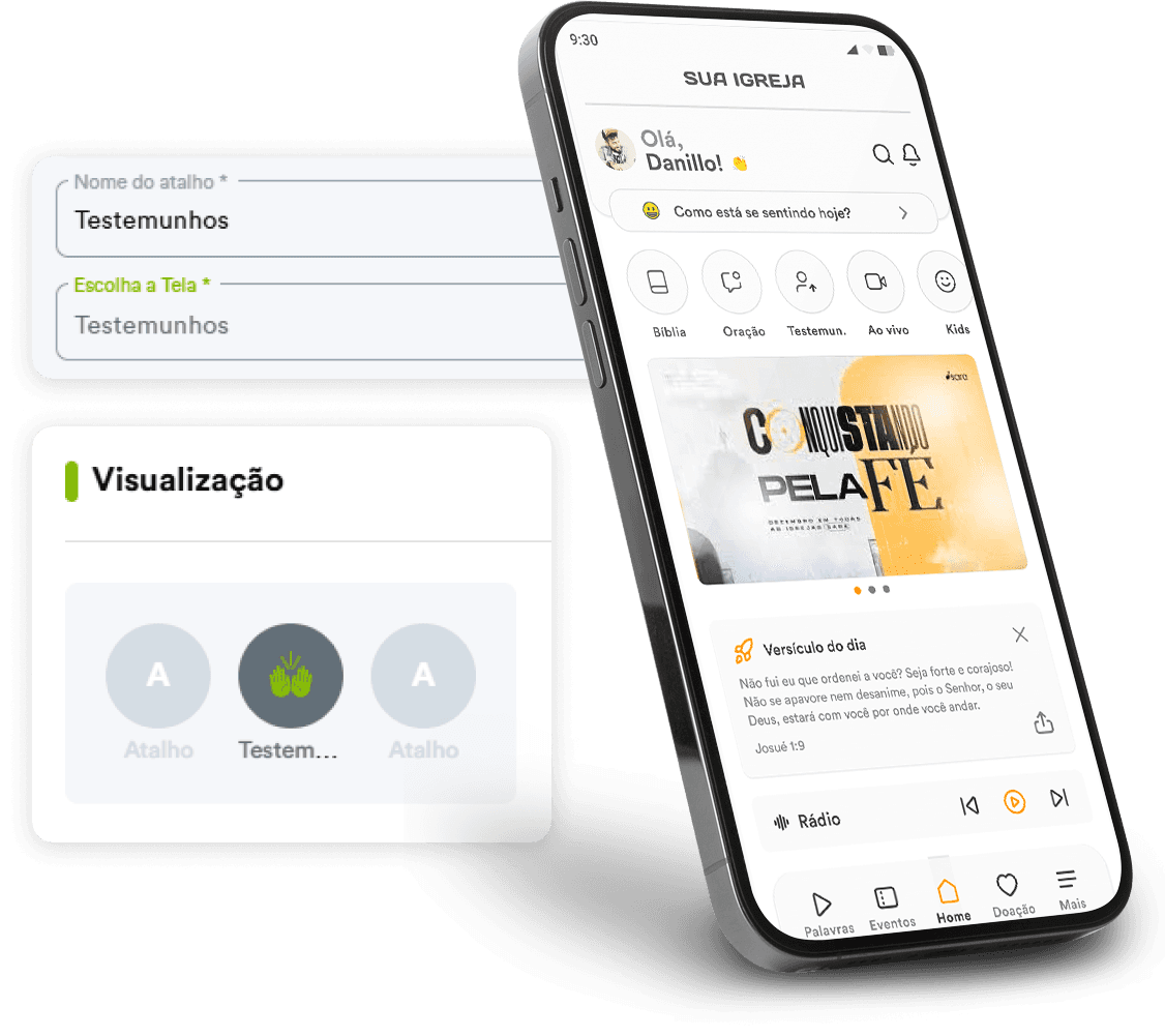 Imagine abrir o app e ser impactado por aquilo que Deus tem feito na vida da sua igreja. Isso fortalece a cultura de gratidão, gera mais conexão e encoraja outras pessoas a também compartilharem seus testemunhos. Seu app deixa de ser apenas uma ferramenta de gestão e passa a ser também um espaço de edificação, inspiração e construção de fé.