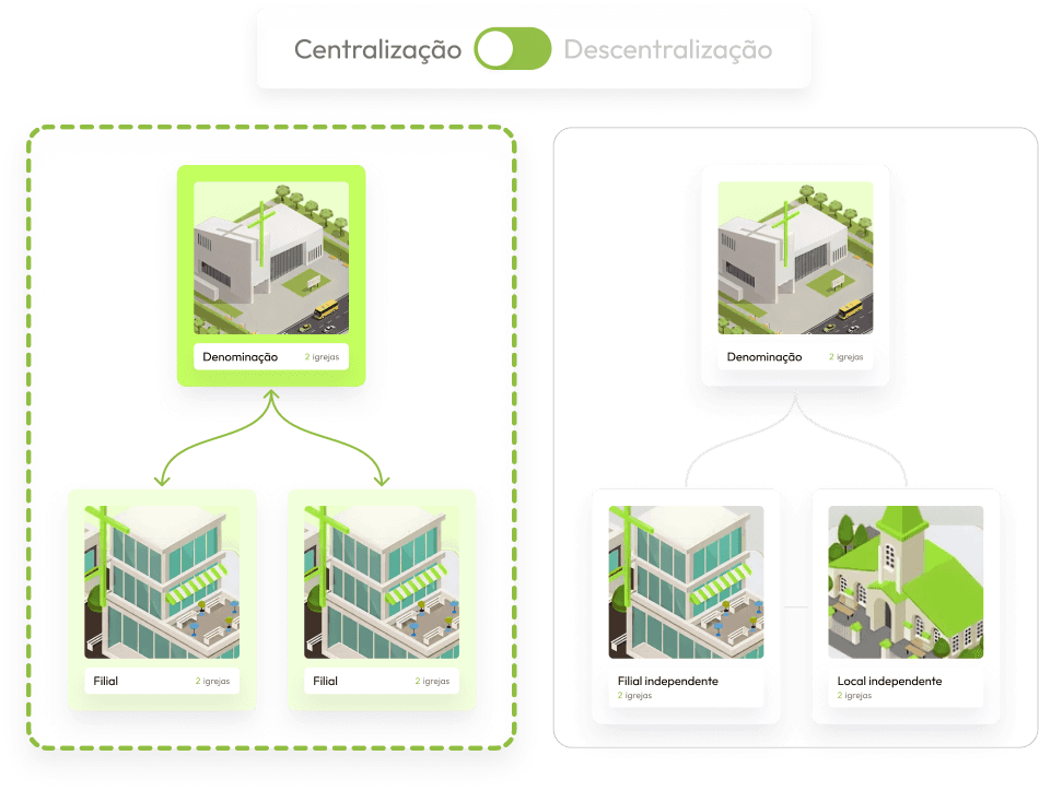 Agora você escolhe entre administração centralizada, descentralizada ou híbrida, tudo em poucos cliques, com total autonomia e segurança. Esse sistema inteligente também permite criar contas, categorias, unidades de negócio e centros de custo em níveis local, regional ou denominacional, garantindo mais organização e clareza operacional. E mais: toda migração entre segmentações preserva os dados e vínculos originais, garantindo segurança!