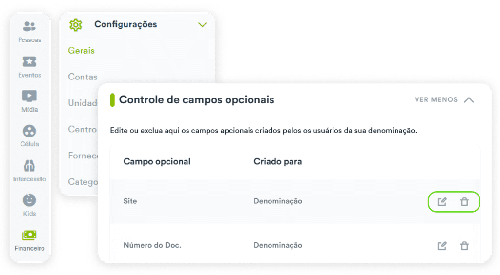 Com essa atualização, sua igreja recebe autonomia para excluir campos adicionais criados durante os lançamentos financeiros.